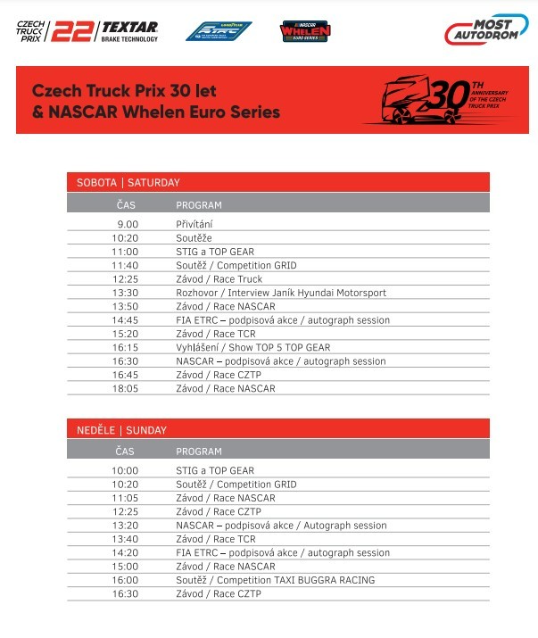 Letošní 30. ročník Czech Truck Prix na autodromu v Mostě je spojen s NASCAR Whelen Euro Series. Je na co se těšit, jubilejní ročník má tak opět nadupaný program "nejen" pro fanoušky motosportu.