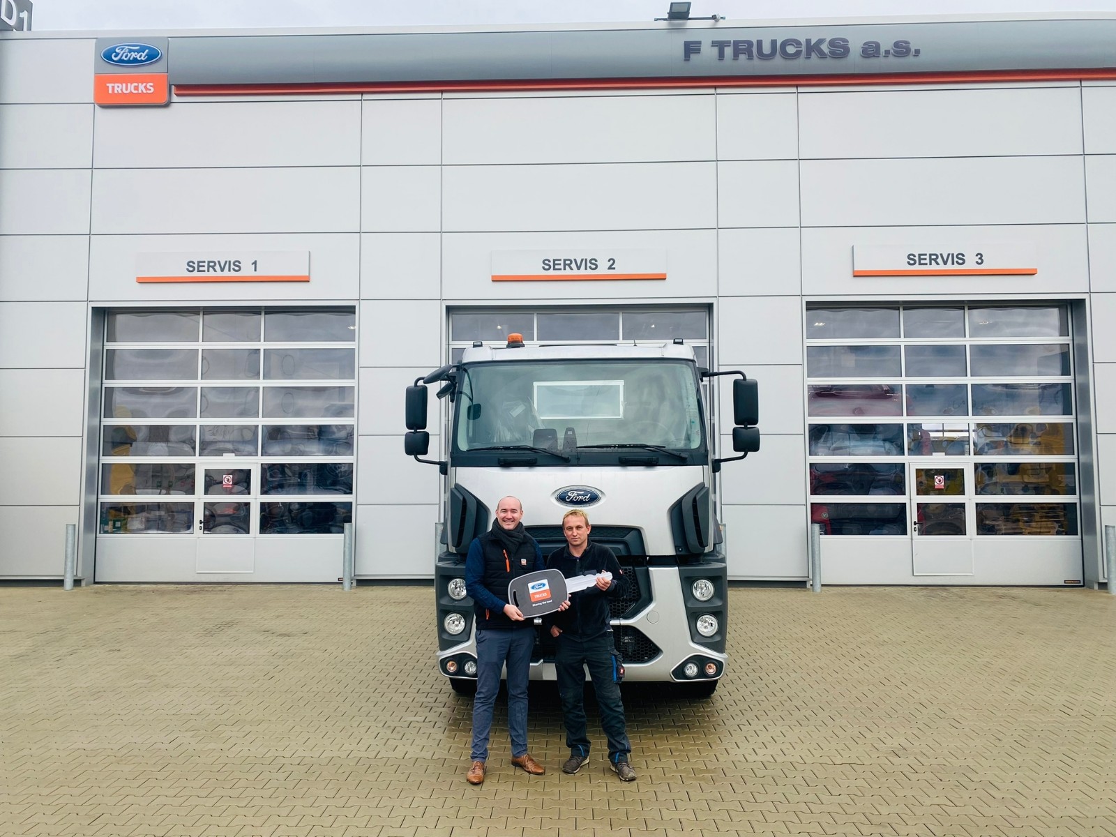 Náš kolega Jakub Tománek spolu se zákazníkem při předání nového vozu v Prodejním a servisním centru Ford Trucks ve Strančicích.