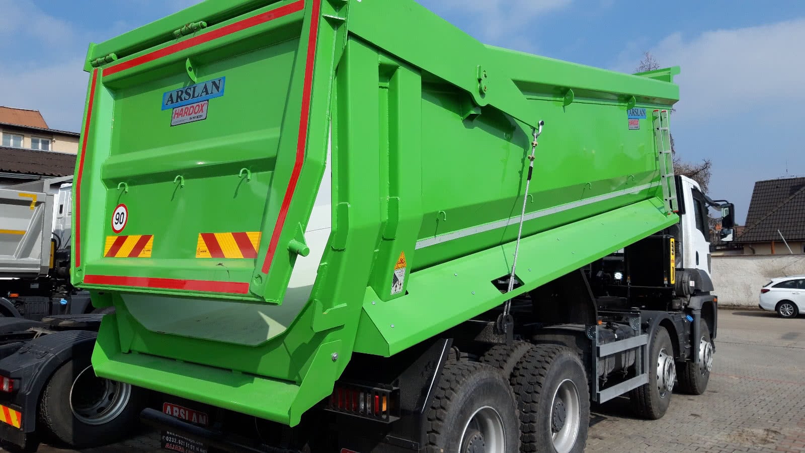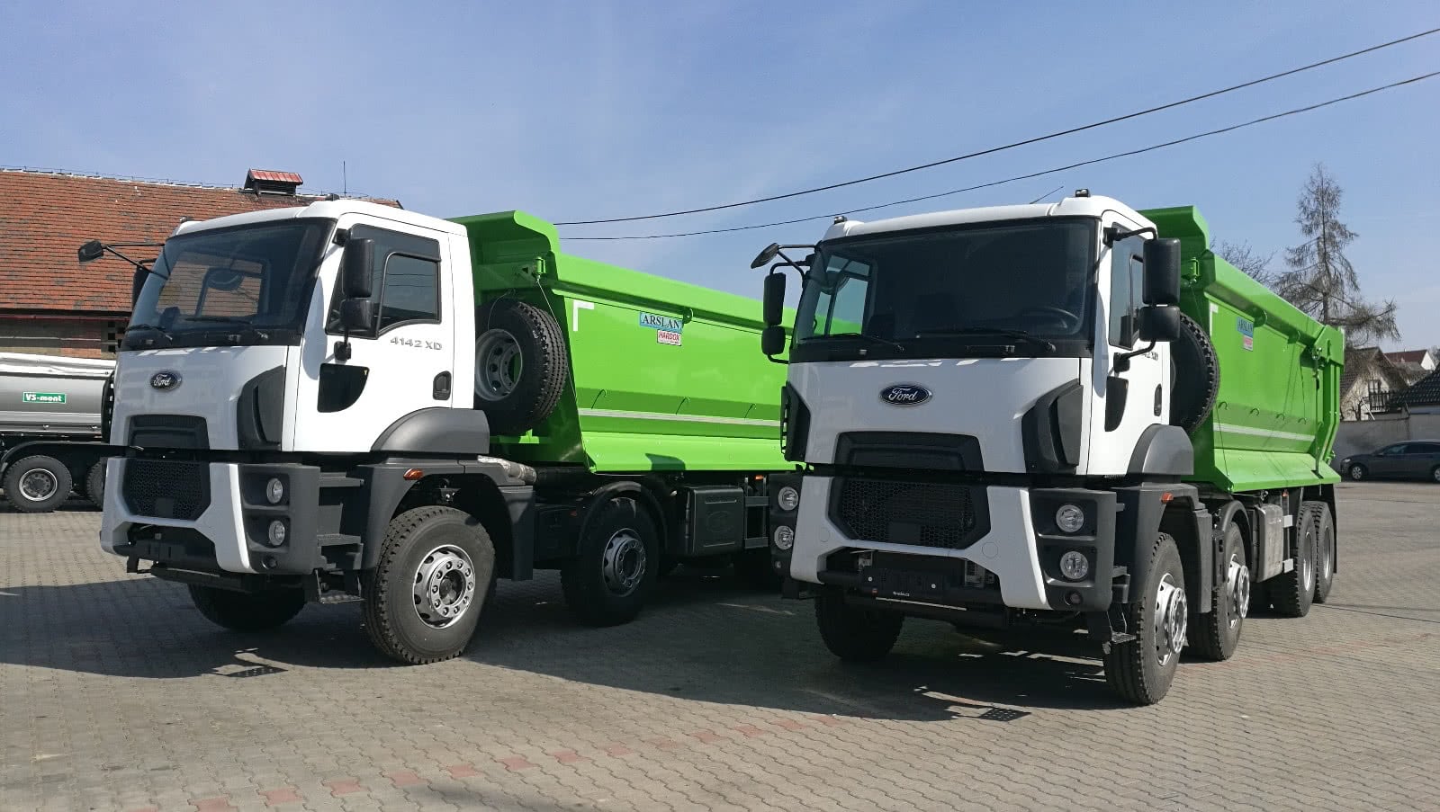 Jednostranná sklápěcí nástavba o objemu 18 a 22 m3 je z produkce renomovaného tureckého výrobce ARSLAN, který dodává své výrobky do celé střední Evropy samozřejmě s použitím osvědčené hydrauliky HYVA.. Do lomového provozu je vybavena 8mm hardoxovou podlahou a 6mm stěnami. Zadní čelo je mechanicky otvíratelné v průběhu sklápění. „ Kombinace s 18m3 korbou je v našich podmínkách určena pro provoz zejména mimo veřejné komunikace. V Turecku jsou ale 22kubíkové korby běžnou součástí stavebních vozidel. Podobná konfigurace se velmi dobře osvědčila v náročných podmínkách při stavbě nového mezinárodního letiště v Istanbulu“, uvádí Libor Vimr, manažer prodeje nových vozidel Ford Trucks, který dodávku vozidel řídil.