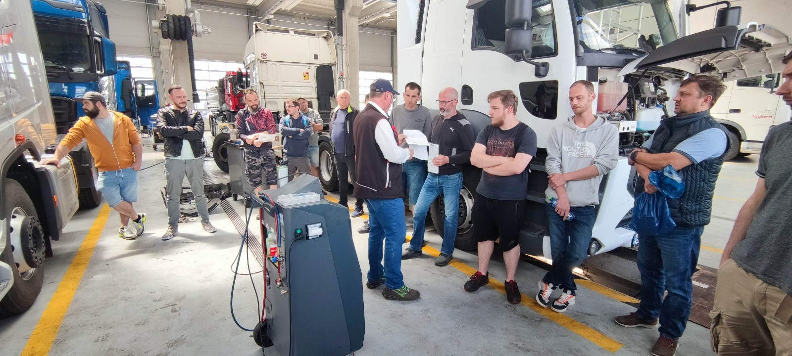 Na centrále společnosti F TRUCKS v Průhonicích probíhalo technické školení, na které poté navazovalo školení praktických dovedností v Servisním centru ve Strančicích. Naši servisní experti důkladně proškolili účastníky školení v oblasti informačních systémů pro Ford Trucks F-MAX včetně praktické demonstrace souvisejících servisních úkonů na servisu.