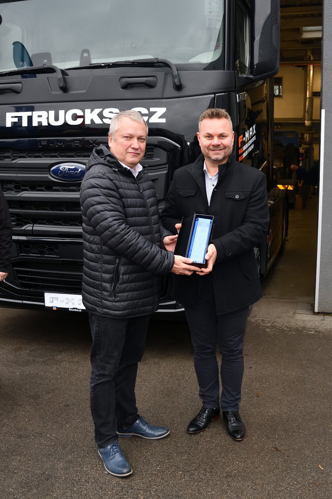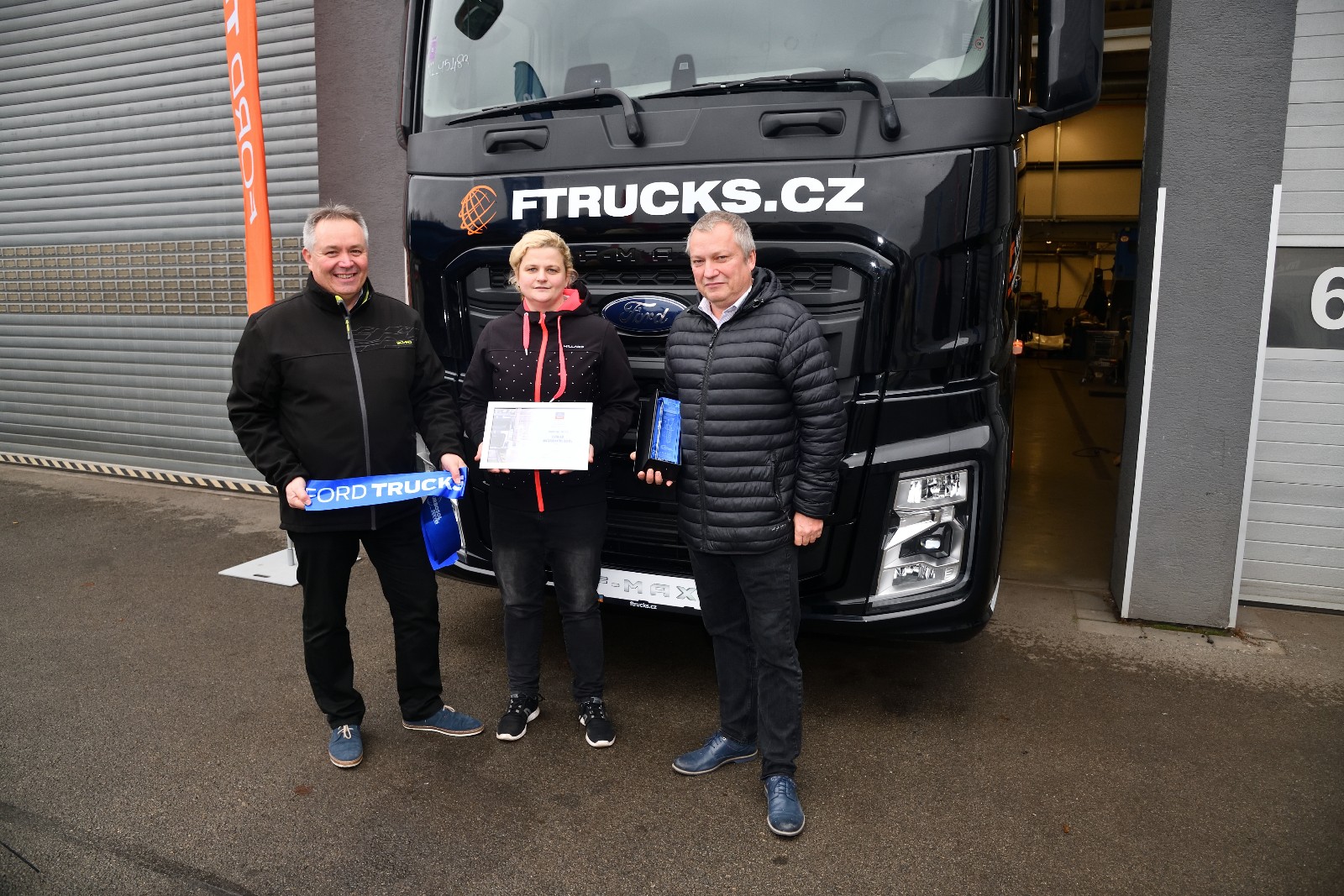 Nechybělo tradiční přestřižení pásky spolu s předáním pamětního kamene a certifikátu ze strany vedení společnosti F TRUCKS a.s. importéra značky Ford Trucks v České republice.